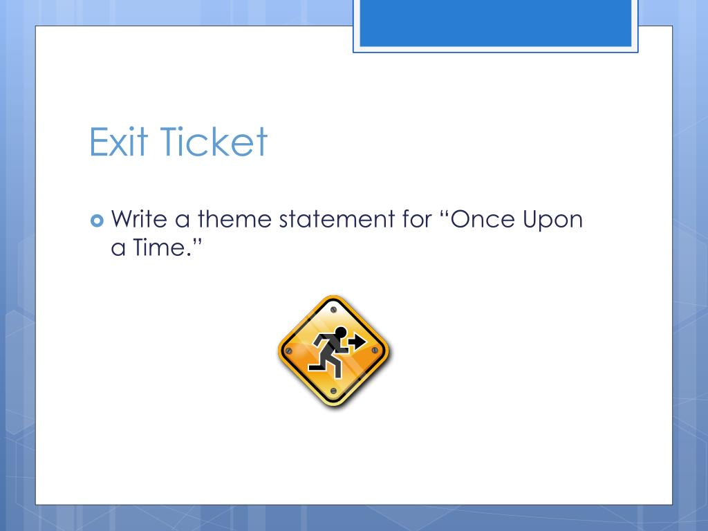 Exit Ticket • Write a theme statement for “Once Upon a Time.”