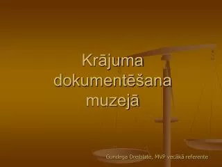 Krājuma dokumentēšana muzejā. Gundega Dreiblate, MVP vecākā referente. Kas ir muzeja krājums?. Krājums ir vēsturiski izveidojies, zinātniski pamatots muzeja priekšmetu kopums, kas atrodas muzejā. Muzeja priekšmets.