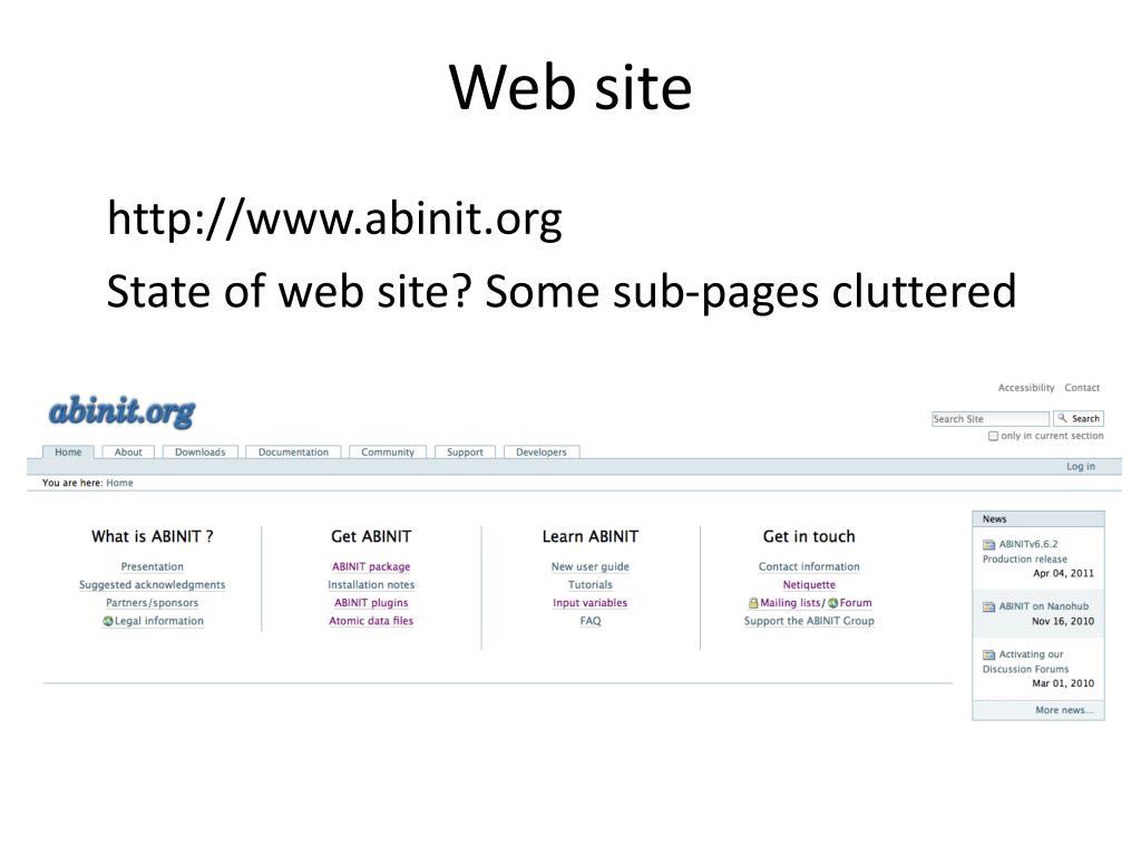 Web site http://www.abinit.org State of web site? Some sub-pages cluttered