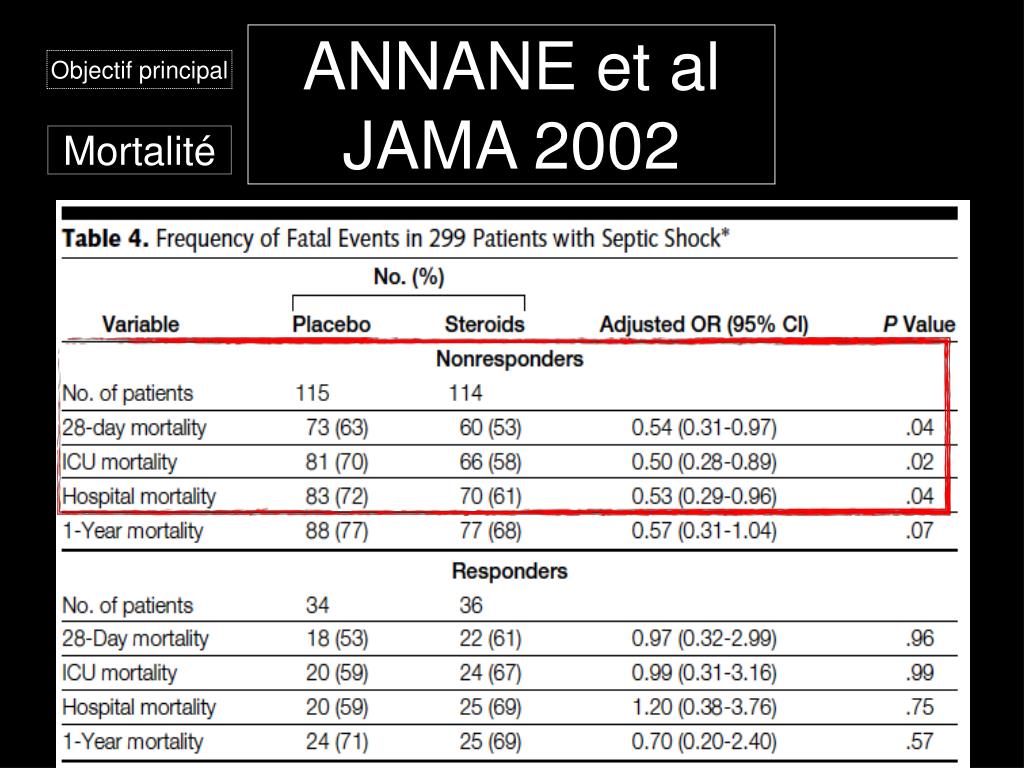 ANNANE et al JAMA 2002 Objectif principal Mortalité