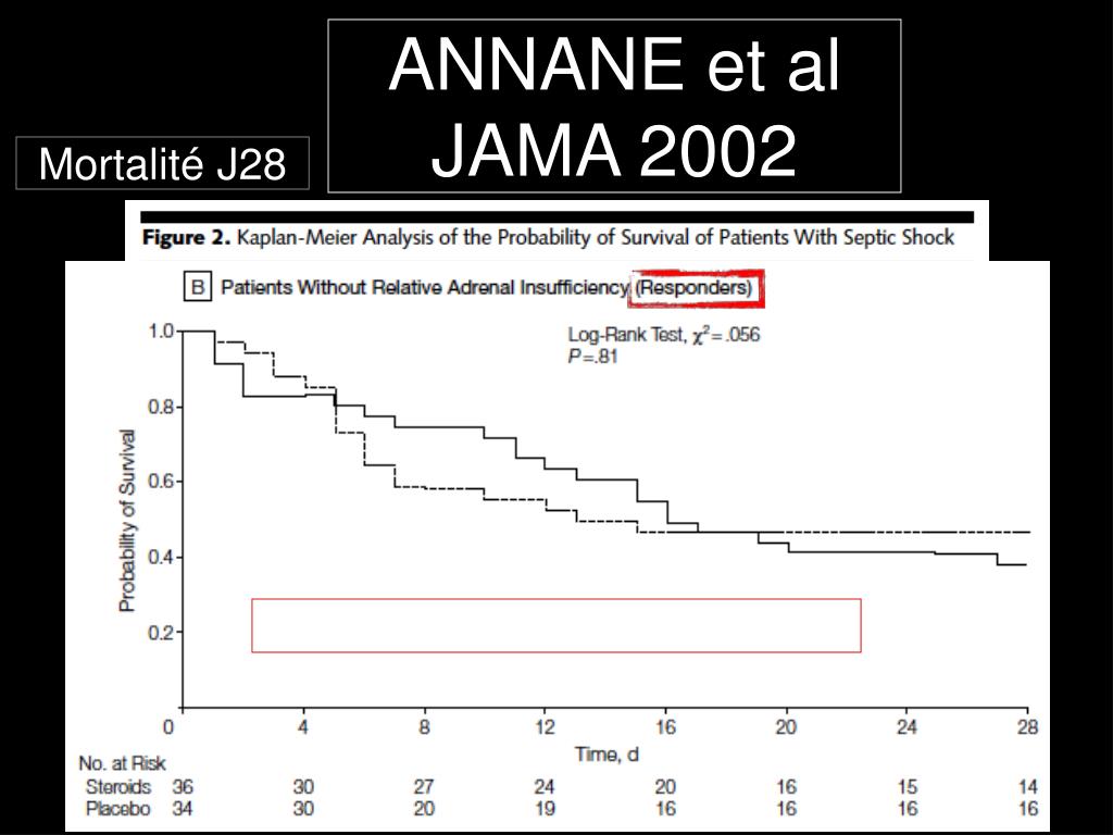 ANNANE et al JAMA 2002 Mortalité J28 Pas de différence de mortalité