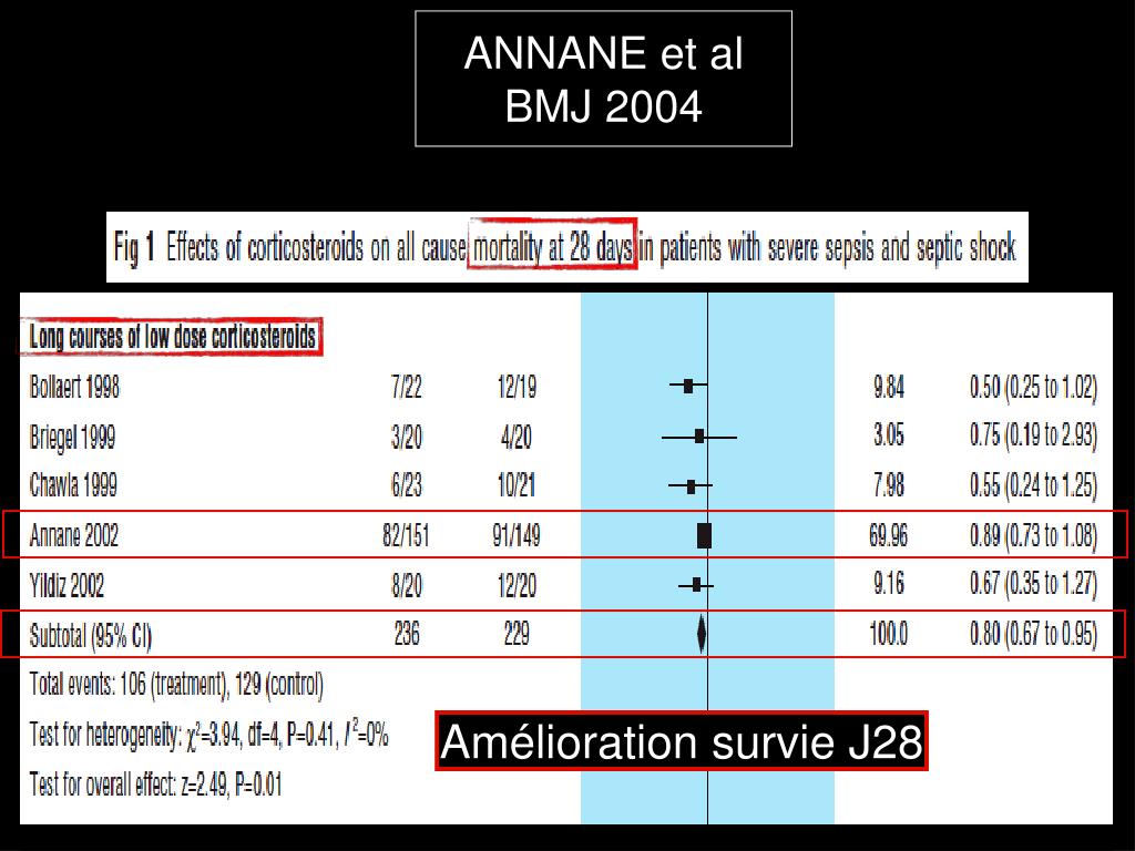 ANNANE et al BMJ 2004 Amélioration survie J28