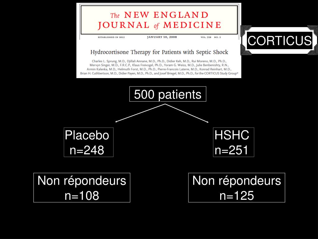500 patients CORTICUS Placebo n=248 HSHC n=251 Non répondeurs n=108 Non répondeurs n=125