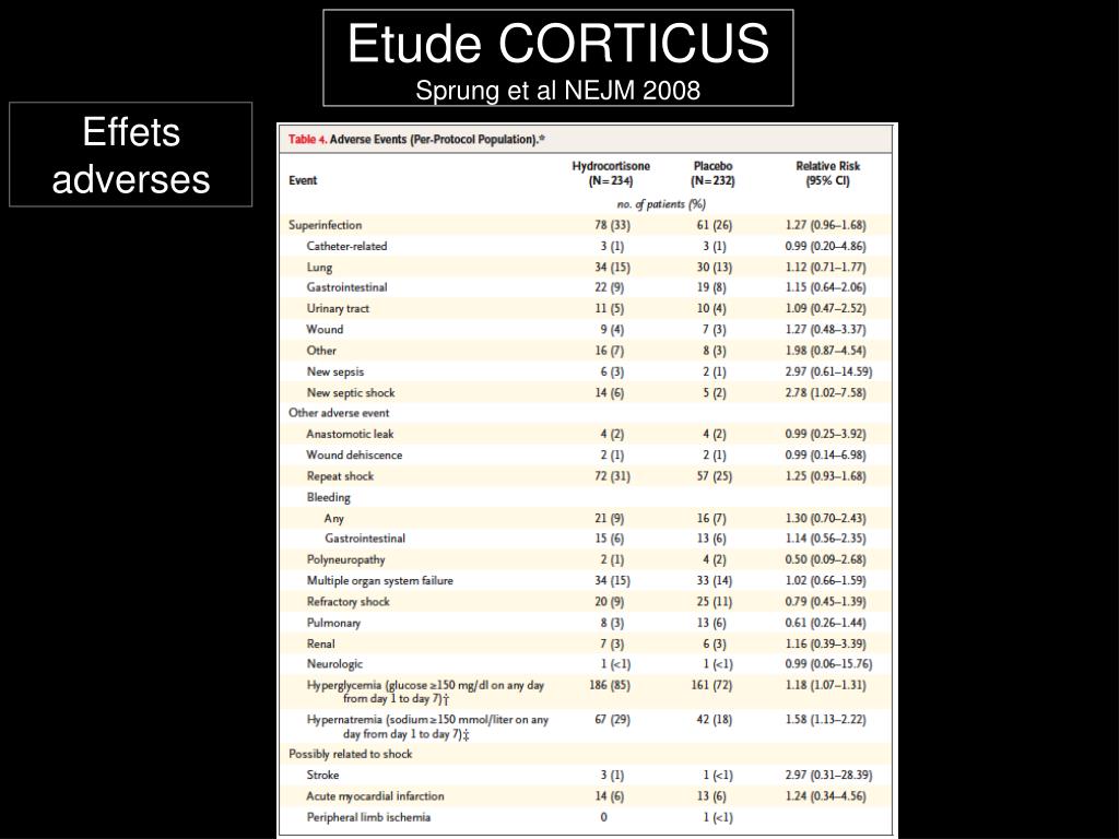 Etude CORTICUS Sprung et al NEJM 2008 Effets adverses