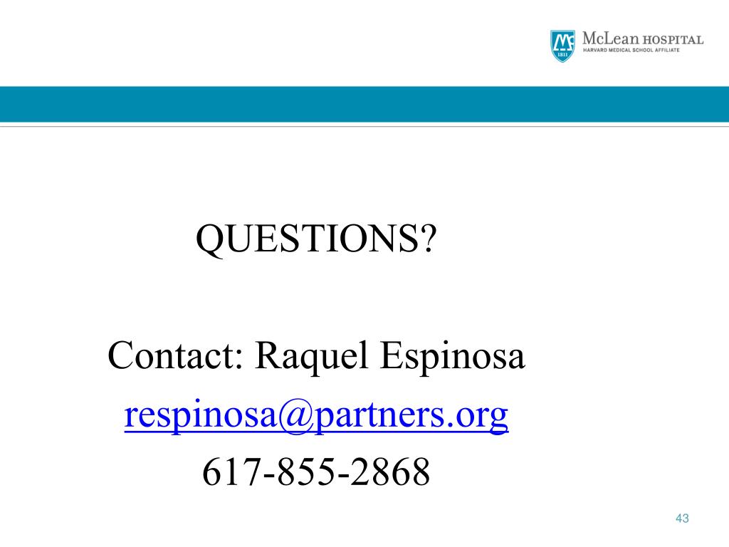 QUESTIONS? Contact: Raquel Espinosa respinosa@partners.org 617-855-2868