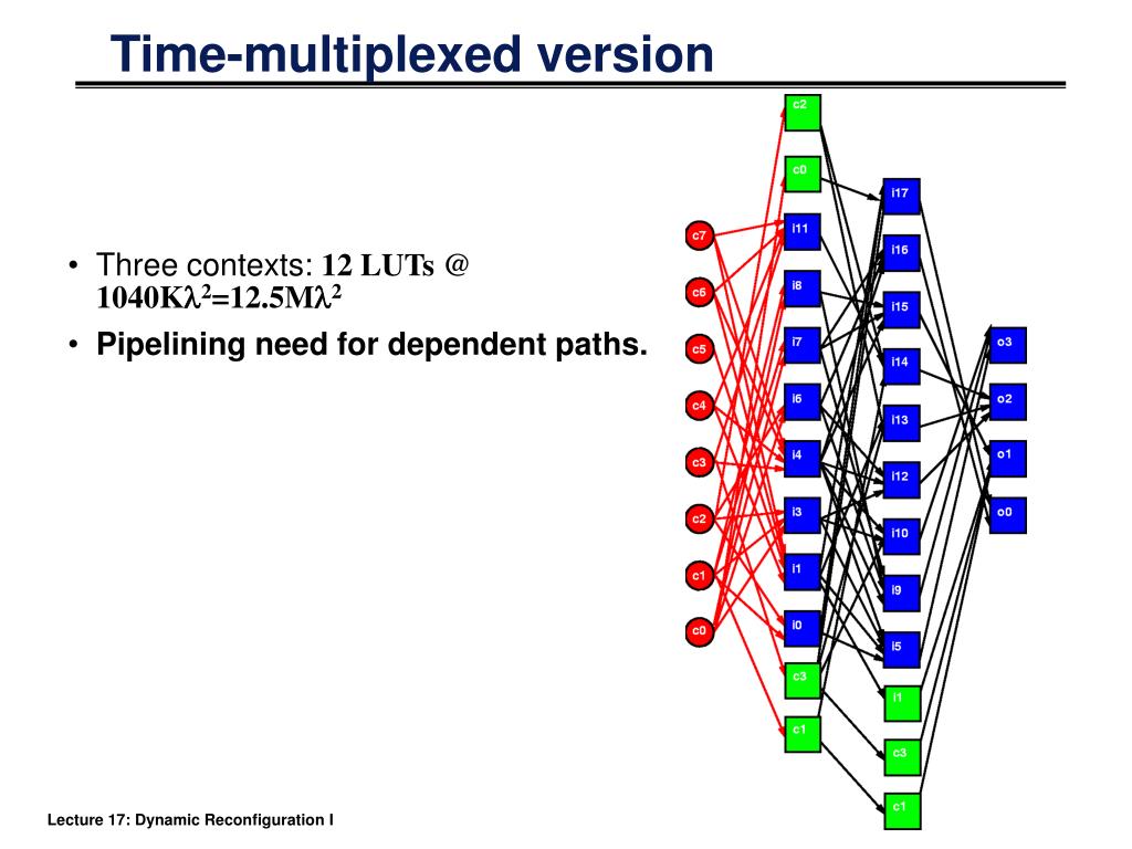 Time-multiplexed version • Three contexts: 12 LUTs @ 1040Kl2=12.5Ml2 • Pipelining need for dependent paths.