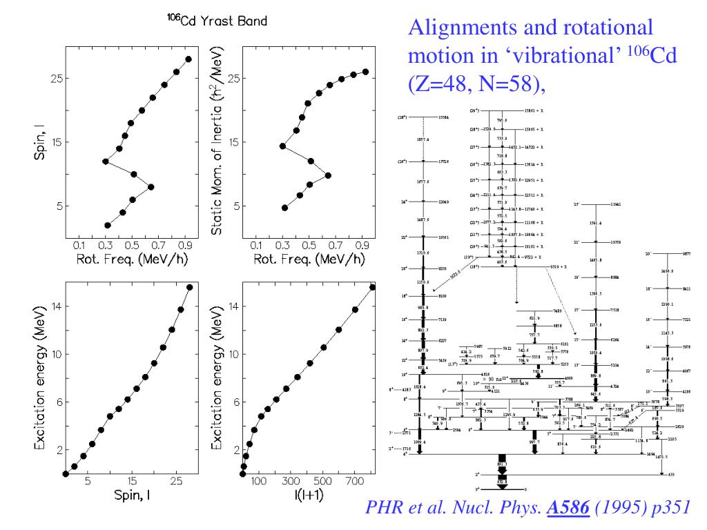 Alignments and rotational motion in ‘vibrational’ 106Cd (Z=48, N=58), PHR et al. Nucl. Phys. A586 (1995) p351