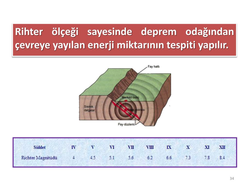 Rihter ölçeği sayesinde deprem odağından çevreye yayılan enerji miktarının tespiti yapılır.