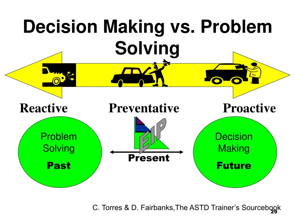 Reactive Preventative Proactive Problem Solving Past Decision Making Future Present Decision Making vs. Problem Solving EIP C. Torres & D. Fairbanks,The ASTD Trainer’s Sourcebook