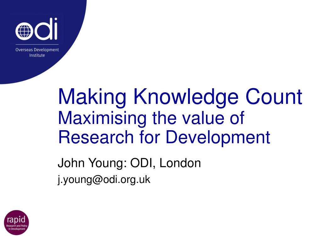 Making Knowledge Count Maximising the value of Research for Development John Young: ODI, London j.young@odi.org.uk