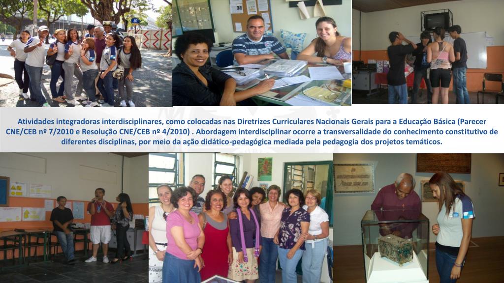 Atividades integradoras interdisciplinares, como colocadas nas Diretrizes Curriculares Nacionais Gerais para a Educação Básica (Parecer CNE/CEB nº 7/2010 e Resolução CNE/CEB nº 4/2010) . Abordagem interdisciplinar ocorre a transversalidade do conhecimento constitutivo de diferentes disciplinas, por meio da ação didático-pedagógica mediada pela pedagogia dos projetos temáticos.