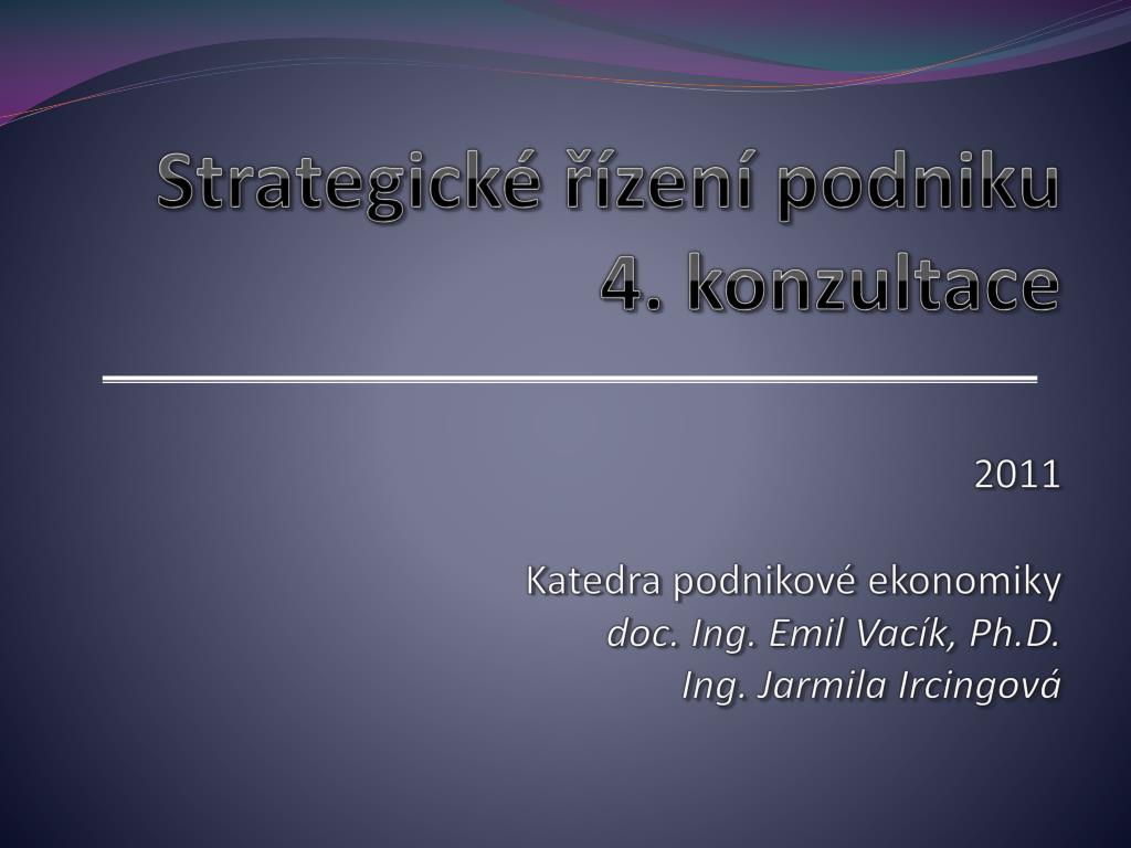 Strategické řízení podniku4. konzultace2011Katedra podnikové ekonomikydoc. Ing. Emil Vacík, Ph.D.Ing. Jarmila Ircingová