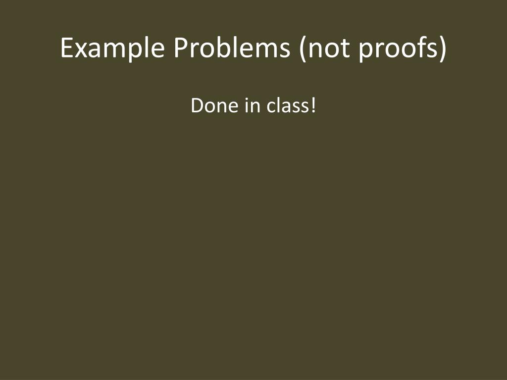 Example Problems (not proofs) Done in class!