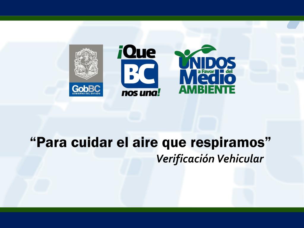 “Para cuidar el aire que respiramos” En noviembre del 2011 se publica el nuevo Decreto de Importación de Vehículos Usados por la Secretaría de Economía, que condiciona a la importación de vehículos a la Verificación Vehicular. 16 Estados de la Republica Mexicana ya operan Verificación Vehicular. Baja California es el primer estado fronterizo que cuenta con un Programa de Verificación Vehicular Ambiental. Programa Sucesor del Frontera 2012.