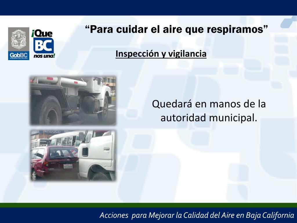 “Para cuidar el aire que respiramos” Inspección y vigilancia Quedará en manos de la autoridad municipal.