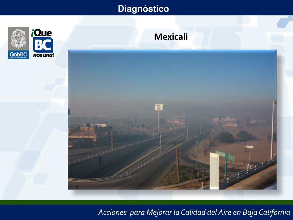 Tercer almanaque de datos y tendencias de la calidad del aire en nueve ciudades mexicanas INE-2007 Derivado de Tercer almanaque de datos y tendencias de la calidad del aire en nueve ciudades mexicanas , se observo que en el año 2004 en la ciudad de Mexicali se rebaso 17 veces los limites máximos permisibles para el Monóxido de Carbono, esto puede asociarse a los vehículos con tecnologías caducas que circulan en la ciudad. Por ello, es fundamental promover y acelerar la renovación de la flota vehicular con tecnologías avanzadas para la reducción de emisiones, en paralelo con el control de las emisiones de los vehículos en circulación a través de programas de verificación vehicular.
