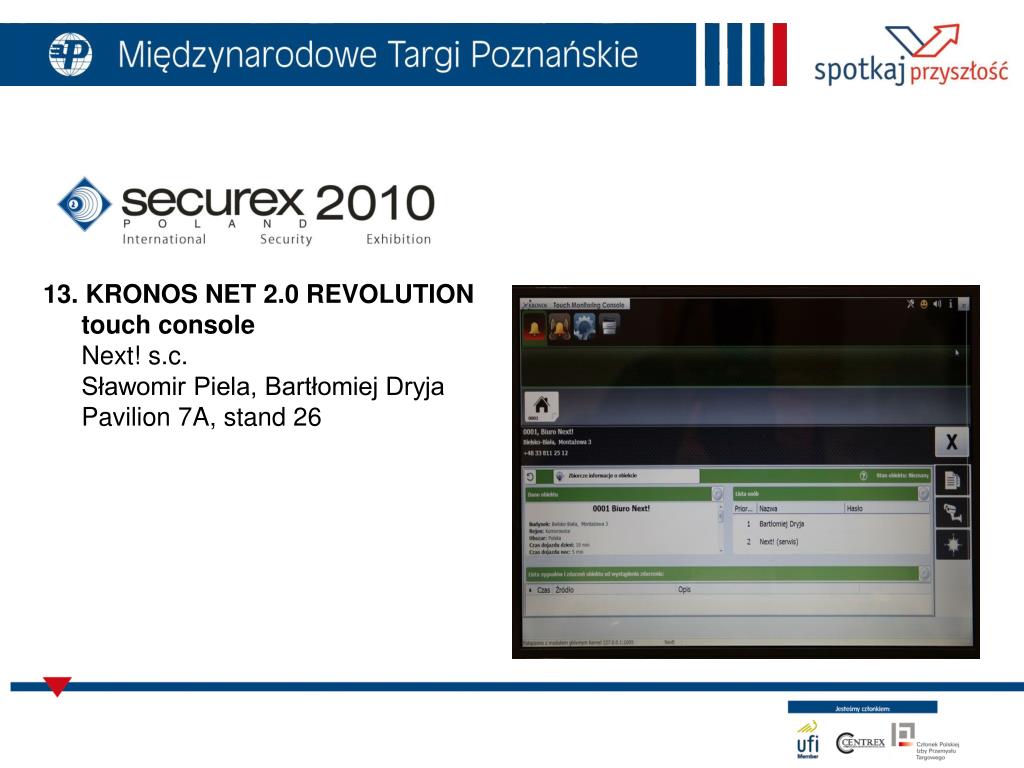 13. KRONOS NET 2.0 REVOLUTION touch console Next! s.c. Sławomir Piela, Bartłomiej DryjaPavilion 7A, stand 26