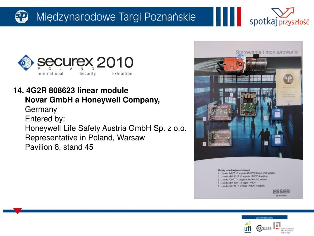 14. 4G2R 808623 linear module Novar GmbH a Honeywell Company, GermanyEntered by: Honeywell Life Safety Austria GmbH Sp. z o.o. Representative in Poland, WarsawPavilion 8, stand 45