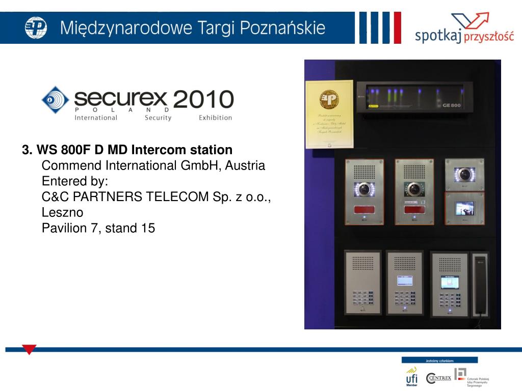 3. WS 800F D MD Intercom station Commend International GmbH, AustriaEntered by: C&C PARTNERS TELECOM Sp. z o.o., LesznoPavilion 7, stand 15