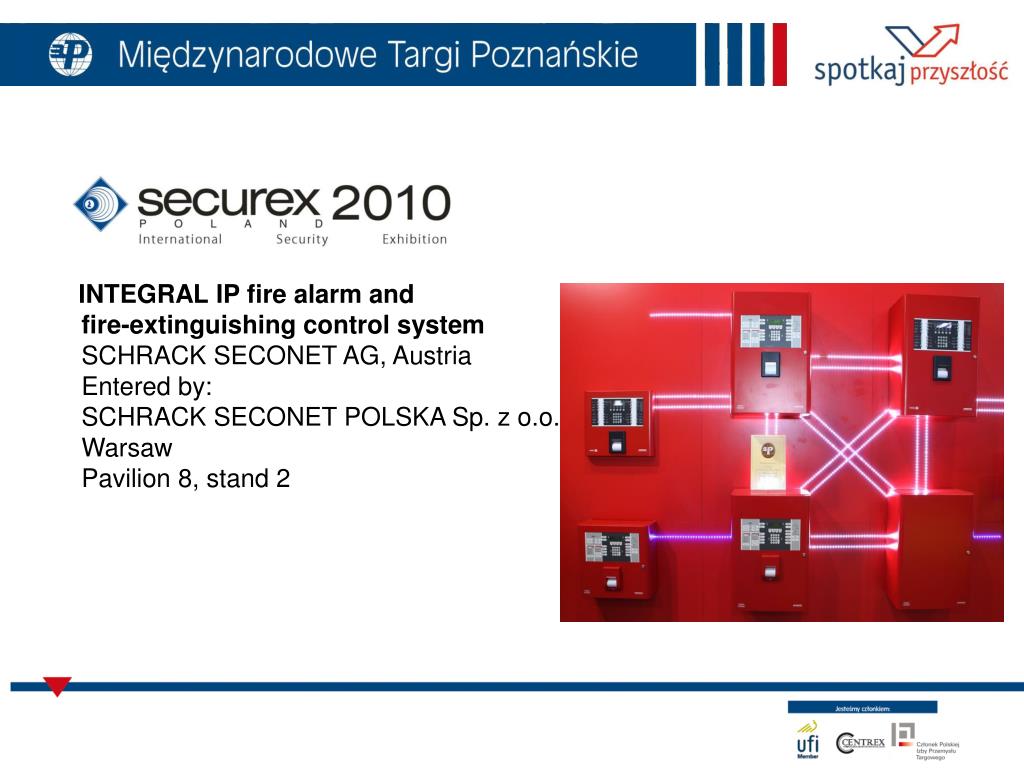 INTEGRAL IP fire alarm and fire-extinguishingcontrol system SCHRACK SECONET AG, AustriaEntered by: SCHRACK SECONET POLSKA Sp. z o.o., WarsawPavilion 8, stand 2