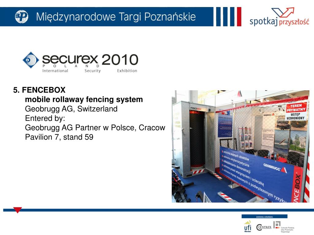 5. FENCEBOX mobile rollaway fencing system Geobrugg AG, SwitzerlandEntered by: Geobrugg AG Partner w Polsce, CracowPavilion 7, stand 59