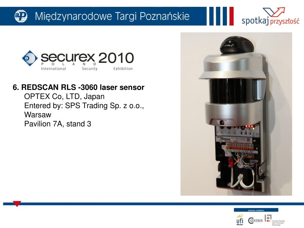 6. REDSCAN RLS -3060 laser sensor OPTEX Co, LTD, JapanEntered by: SPS Trading Sp. z o.o., WarsawPavilion 7A, stand 3