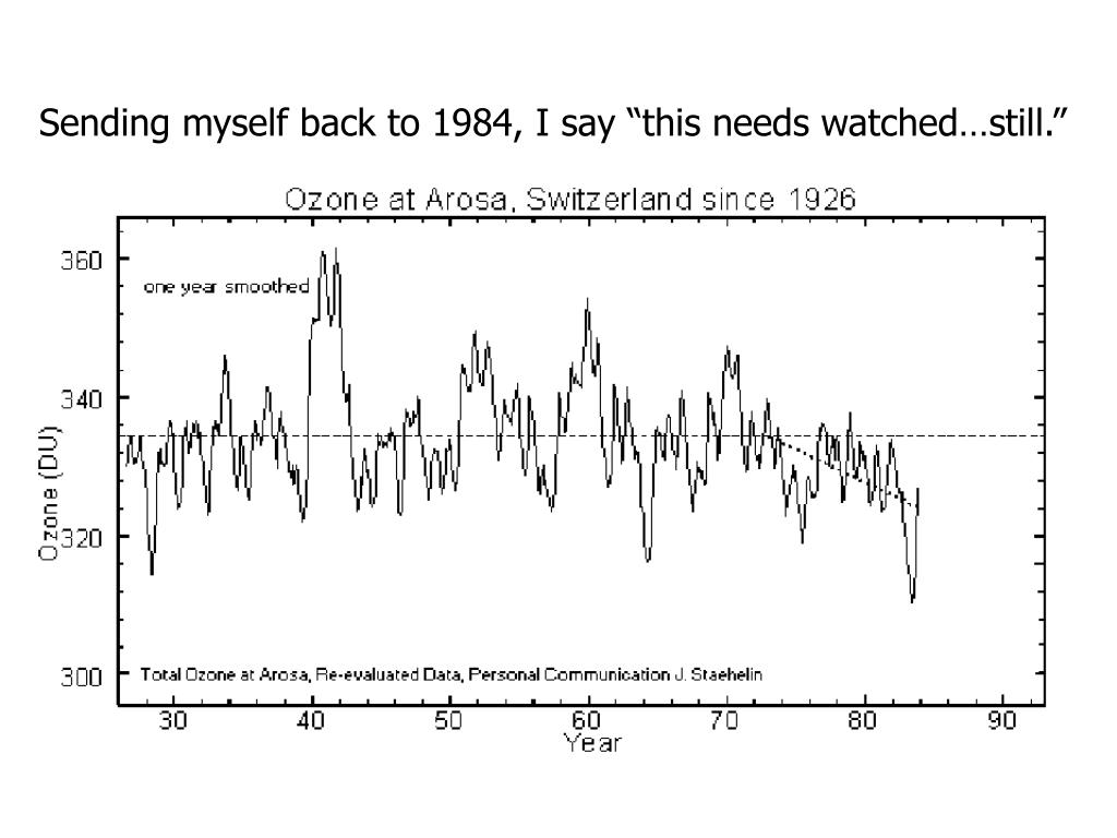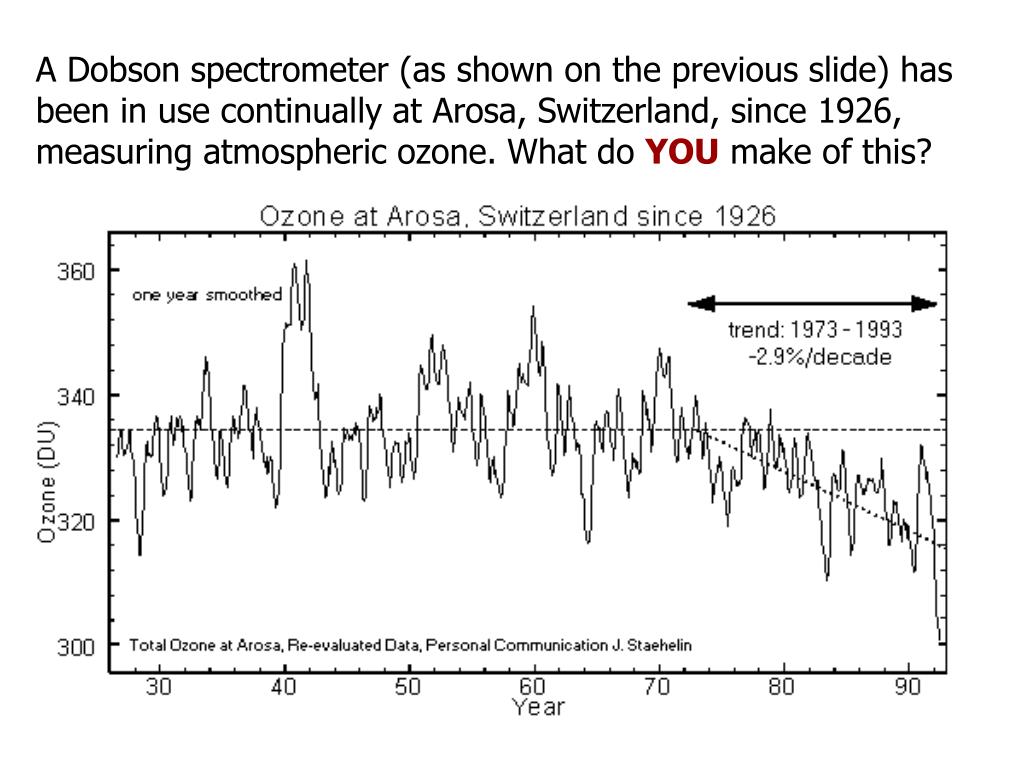 A Dobson spectrometer (as shown on the previous slide) has been in use continually at Arosa, Switzerland, since 1926, measuring atmospheric ozone. What do YOU make of this?