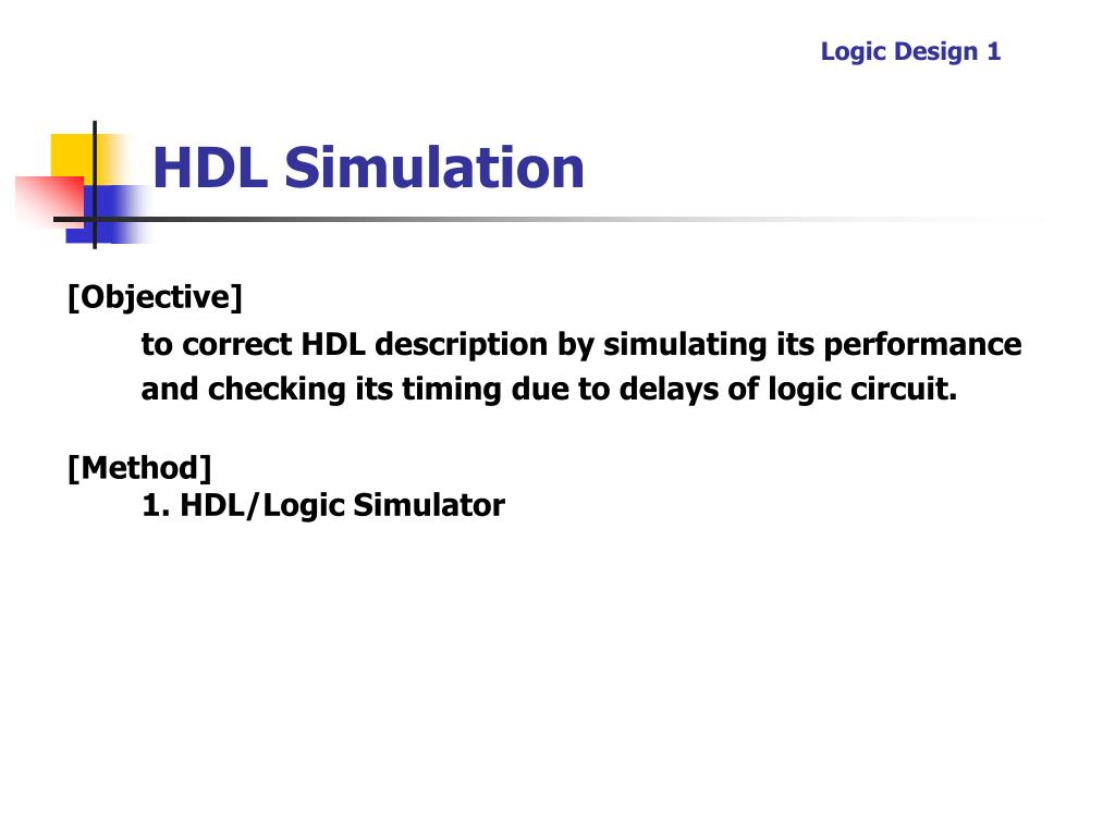 Logic Design 1HDL Simulation [Objective] to correct HDL description by simulating its performance and checking its timing due to delays of logic circuit. [Method] 1. HDL/Logic Simulator