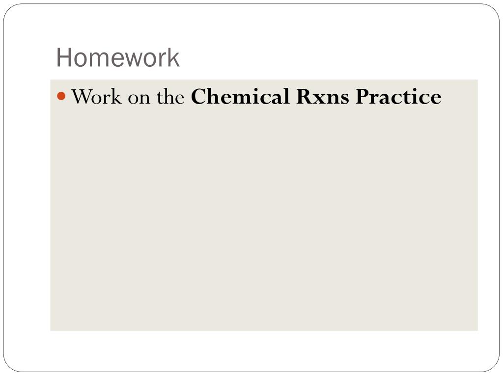 Homework • Work on the Chemical RxnsPractice
