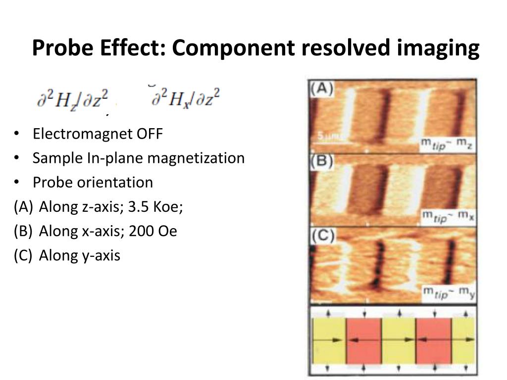 Probe Effect: Component resolved imaging , • Electromagnet OFF • Sample In-plane magnetization • Probe orientation • Along z-axis; 3.5 Koe; • Along x-axis; 200 Oe • Along y-axis