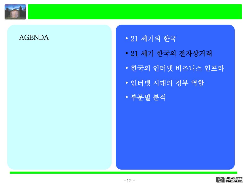 ‘02 EC forecasting report. Internal Use Only. HP Korea Hyong-Kwang CHOI. AGENDA. 21 세기의 한국 21 세기 한국의 전자상거래 한국의 인터넷 비즈니스 인프라 인터넷 시대의 정부 역할 EC 부문별 분석. 세계 산업 리딩 국가.