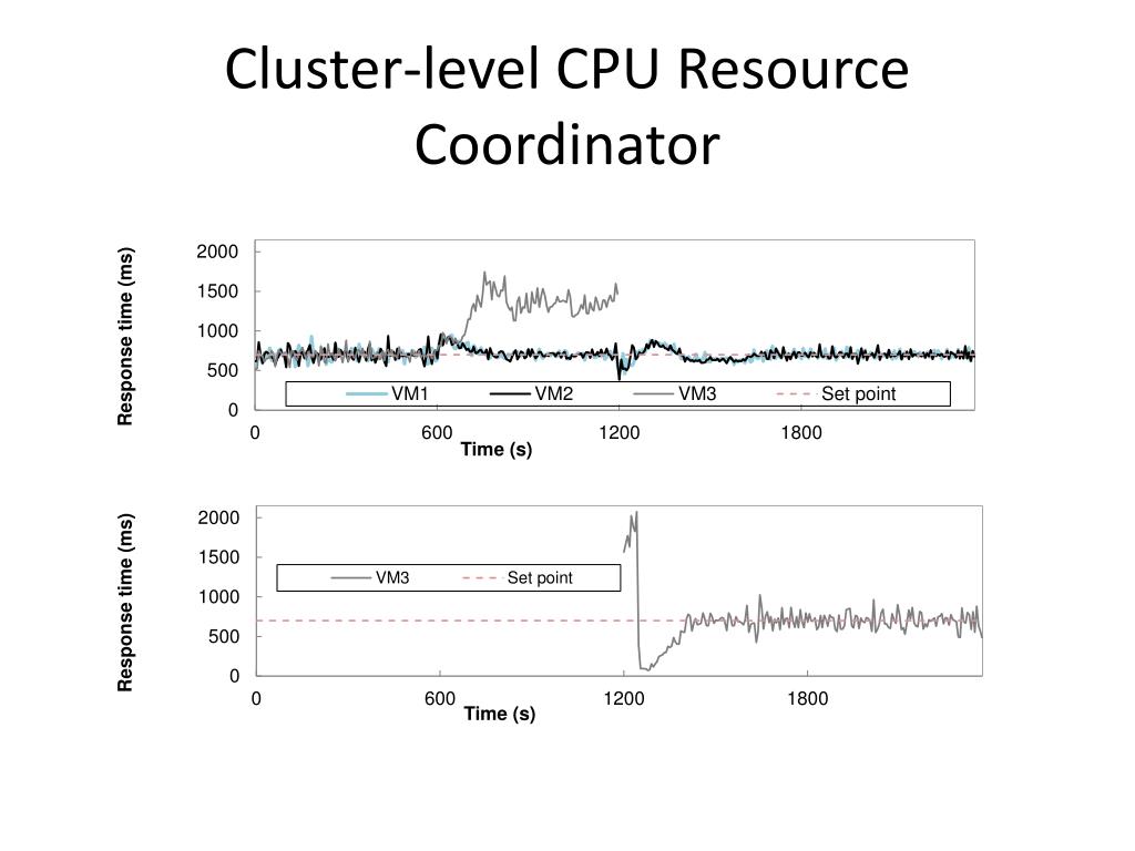 Coordinated Control of Power and Performance Cluster-level CPU Resource Coordinator VM1 VM2 VM3 VM4 CPU allocation Performance Monitors Performance Controllers Performance Monitors Performance Monitors Performance Monitors Performance Monitors Performance Monitors Performance Monitors … Performance Requirements Power Controller [HPCA’08] Power Budget