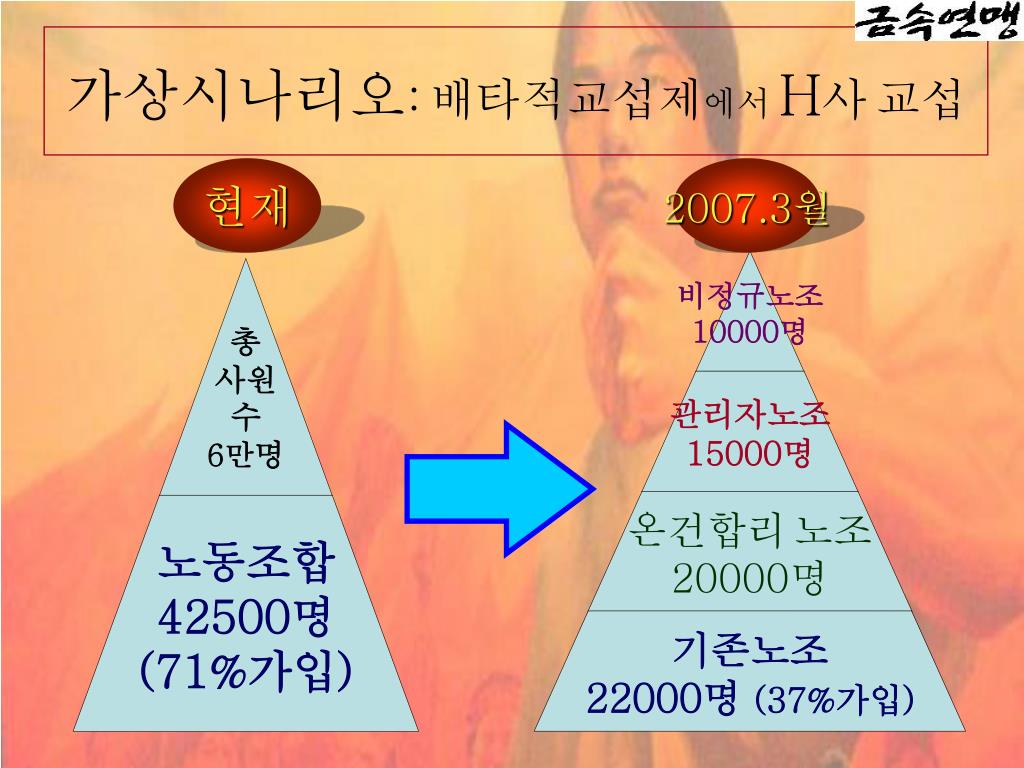 가상시나리오:배타적교섭제에서H사교섭 현재 2007.3월