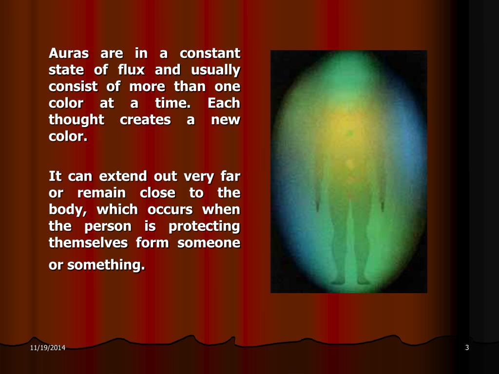 Auras are in a constant state of flux and usually consist of more than one color at a time. Each thought creates a new color. It can extend out very far or remain close to the body, which occurs when the person is protecting themselves form someone or something.