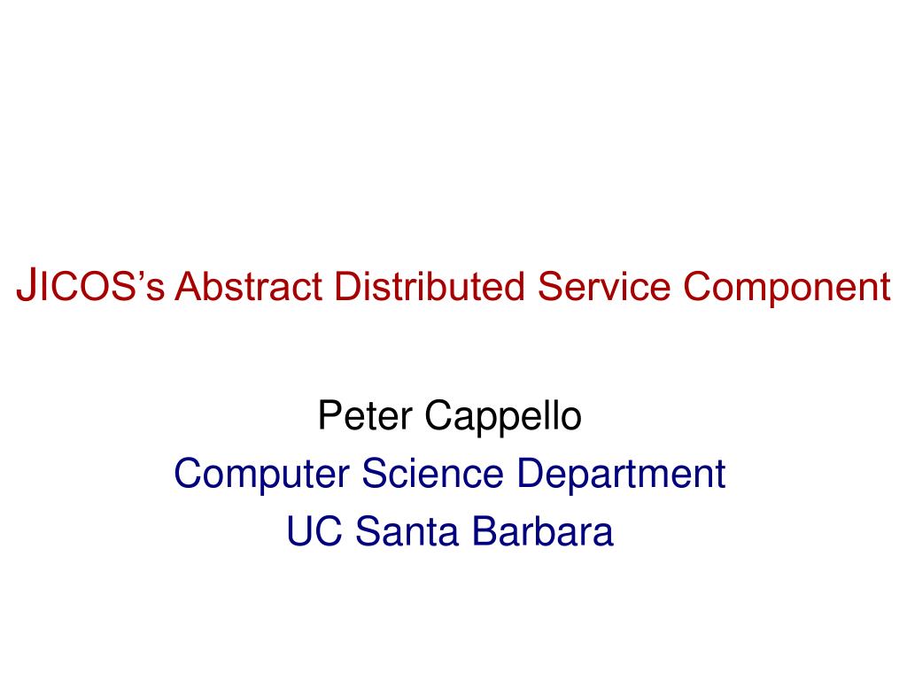 JICOS’s Abstract Distributed Service Component Peter Cappello Computer Science Department UC Santa Barbara