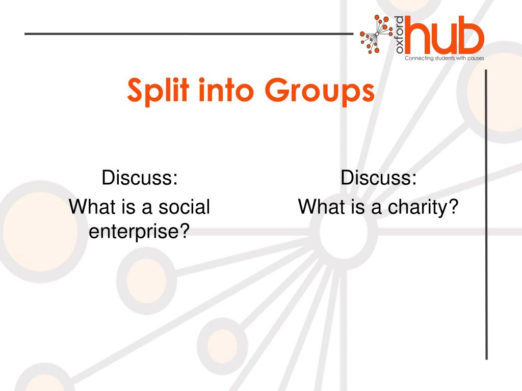 Split into Groups Discuss: What is a social enterprise? Discuss: What is a charity?