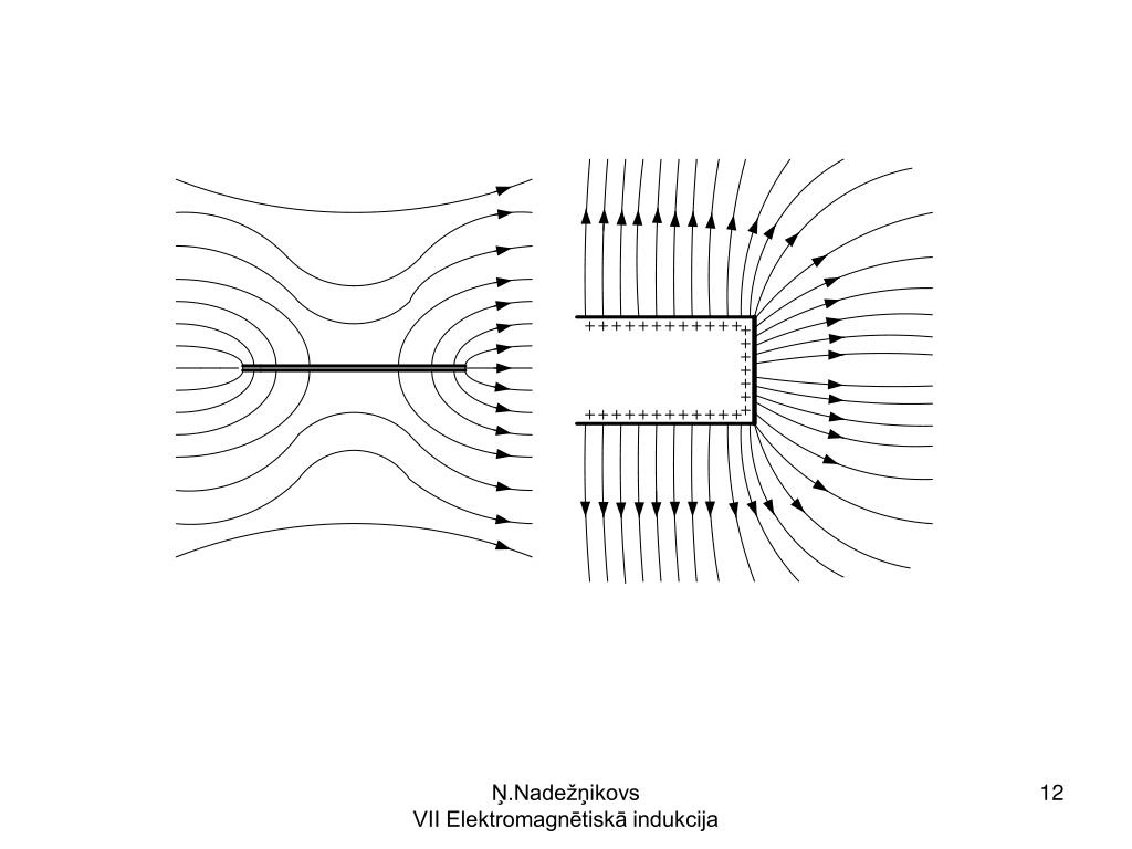 Lādiņu pārvietošanās vairs nenotiek. Kādā laika momentā elektriskā lauka aina attēlota sekojošā zīm. Ņ.Nadežņikovs VII Elektromagnētiskā indukcija
