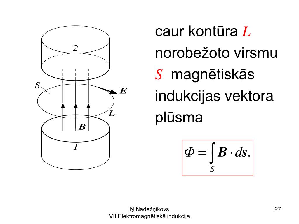 caur kontūra L norobežoto virsmu S magnētiskās indukcijas vektora plūsma Ņ.Nadežņikovs VII Elektromagnētiskā indukcija