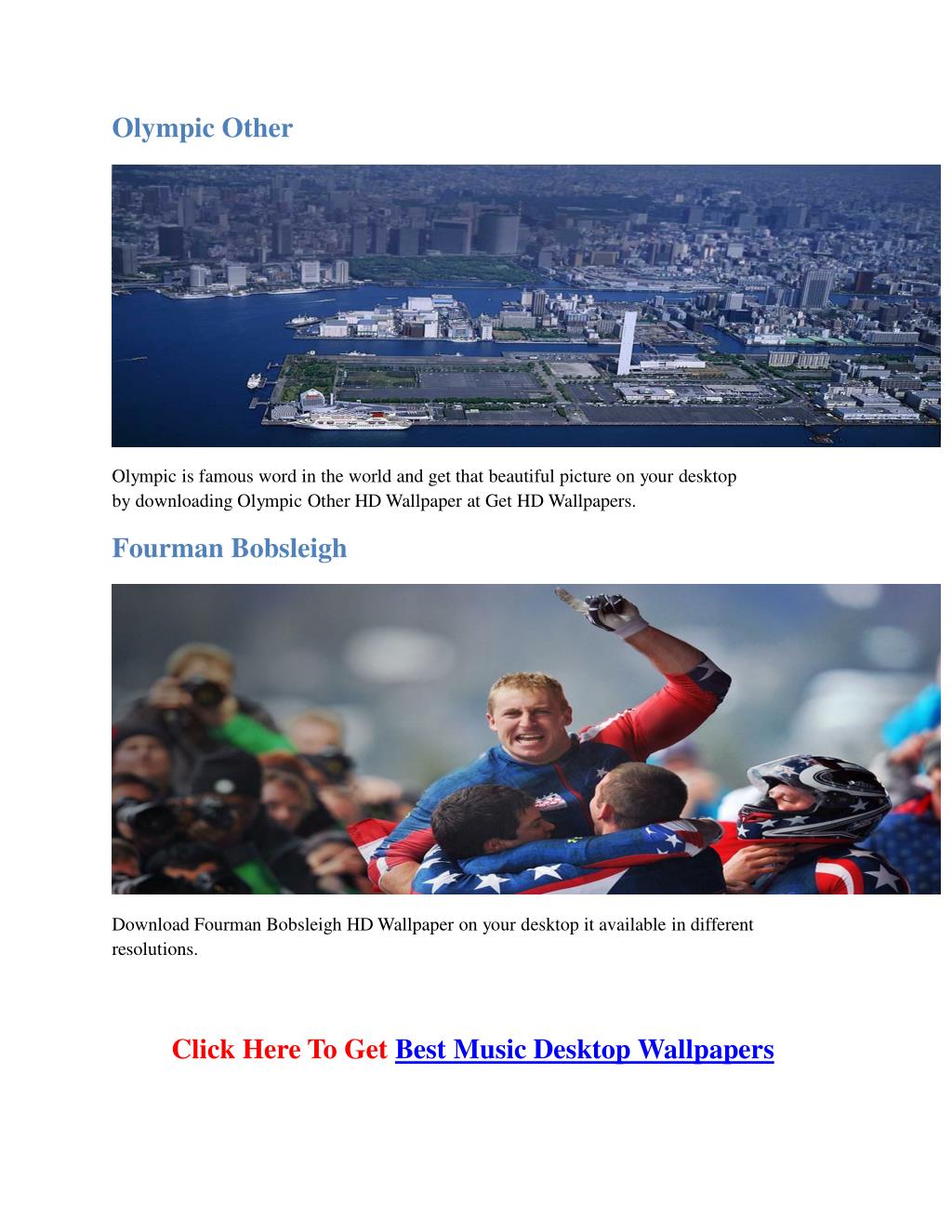 Olympic Other Olympicis famous wordin theworld andget thatbeautiful pictureonyourdesktop by downloadingOlympicOther HD Wallpaper at GetHDWallpapers. FourmanBobsleigh Download Fourman Bobsleigh HDWallpaper onyourdesktop it availablein different resolutions. Click HereToGetBestMusicDesktop Wallpapers