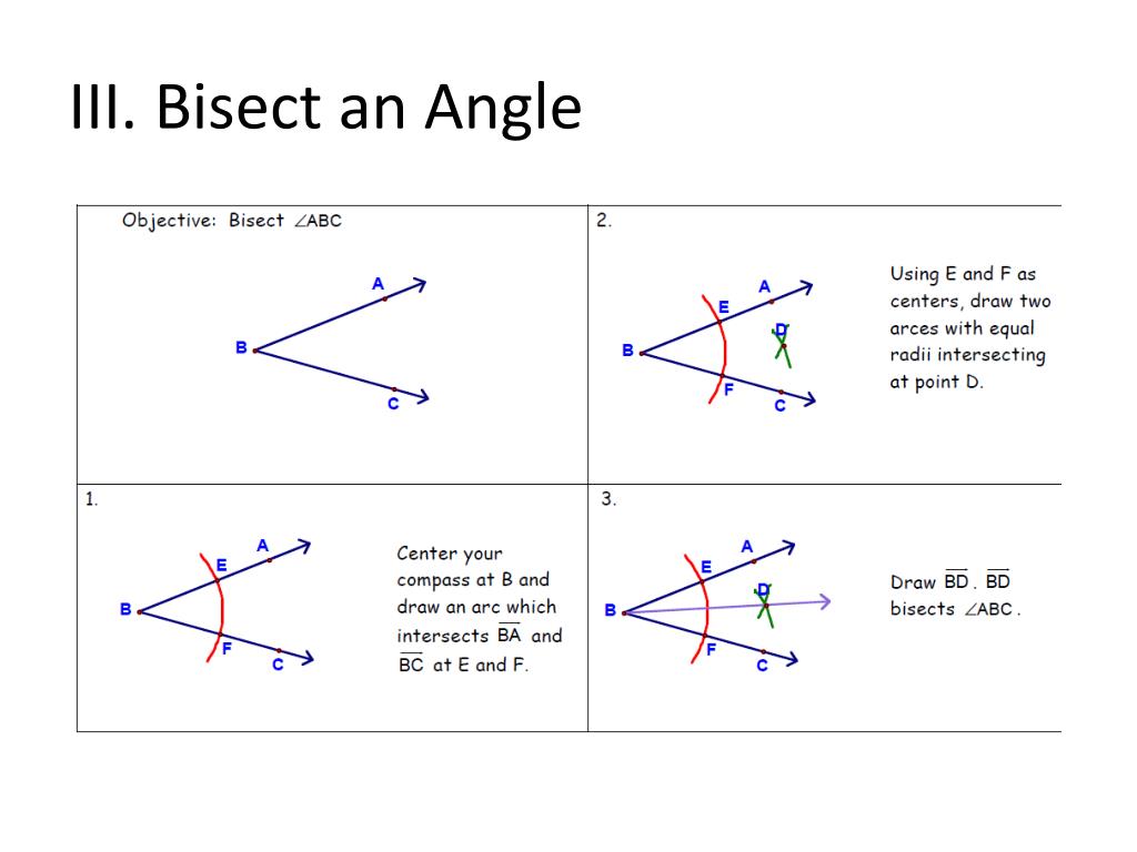 Constructions. LT 1B: I can copy and bisect a segment and angle. I can construct the perpendicular bisector of a line segment and construct a line parallel to a given line through a point not on the line. I. Copy a Segment. II. Bisect a Line Segment. III. Bisect an Angle. IV. Copy an Angle.