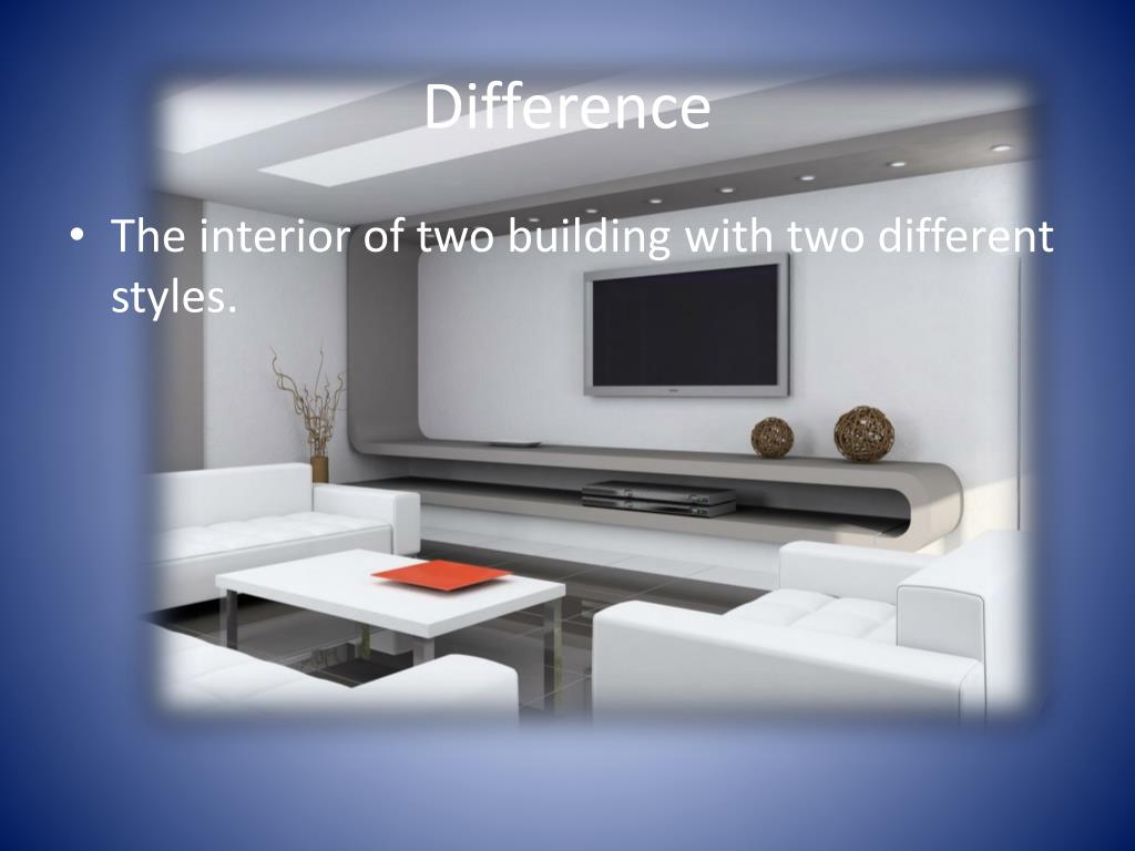 Difference • The interior of two building with two different styles.