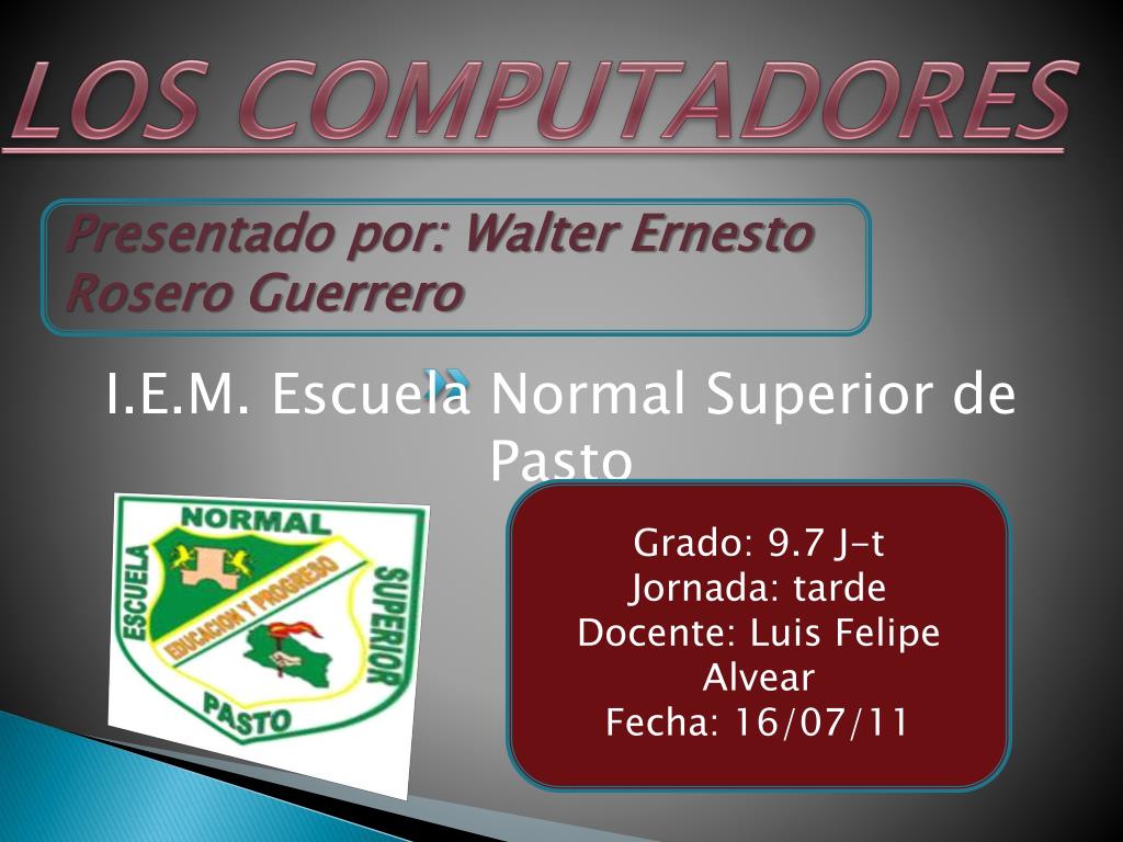 LOS COMPUTADORES Presentado por: Walter Ernesto Rosero Guerrero I.E.M. Escuela Normal Superior de Pasto Grado: 9.7 J-t Jornada: tarde Docente: Luis Felipe Alvear Fecha: 16/07/11
