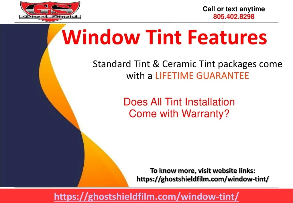 Window Tint Features Standard Tint & Ceramic Tint packages come with a LIFETIME GUARANTEE Does All Tint Installation Come with Warranty? To know more, visit website links: https://ghostshieldfilm.com/window-tint/