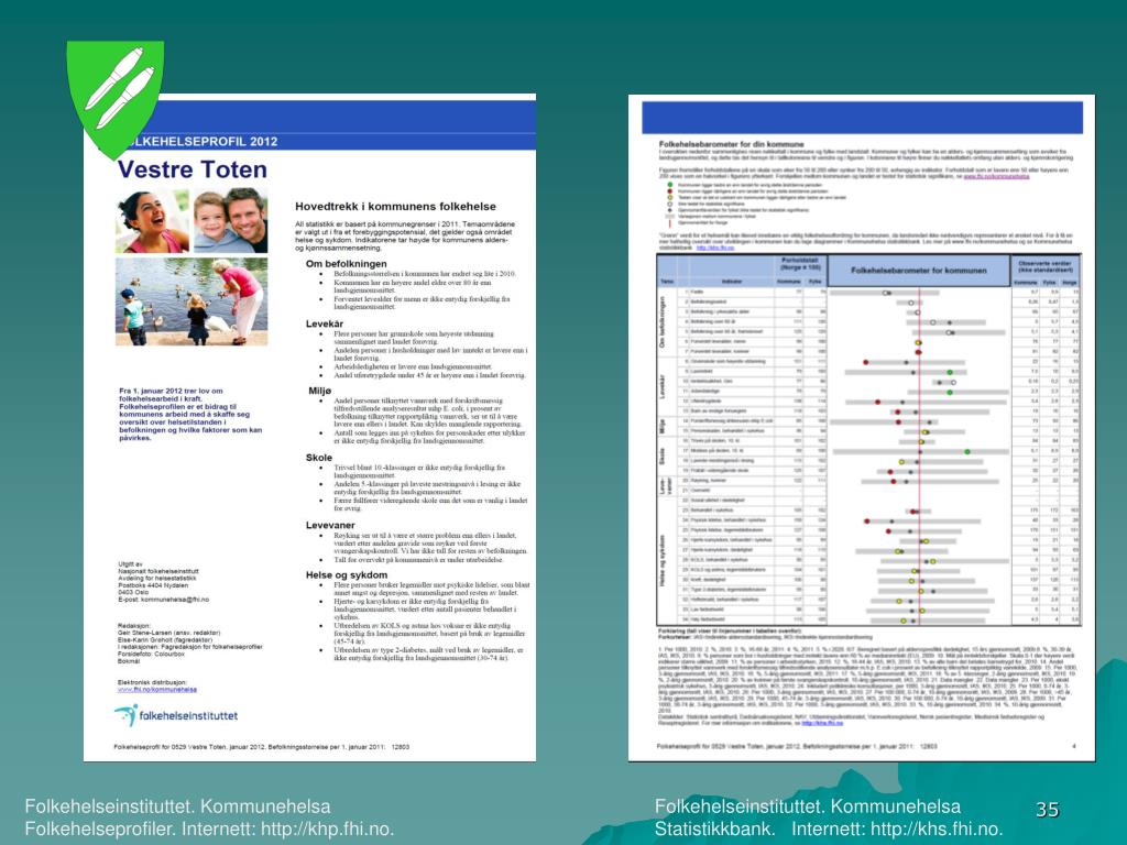Folkehelseinstituttet. Kommunehelsa Folkehelseprofiler. Internett: http://khp.fhi.no. Folkehelseinstituttet. Kommunehelsa Statistikkbank. Internett: http://khs.fhi.no.