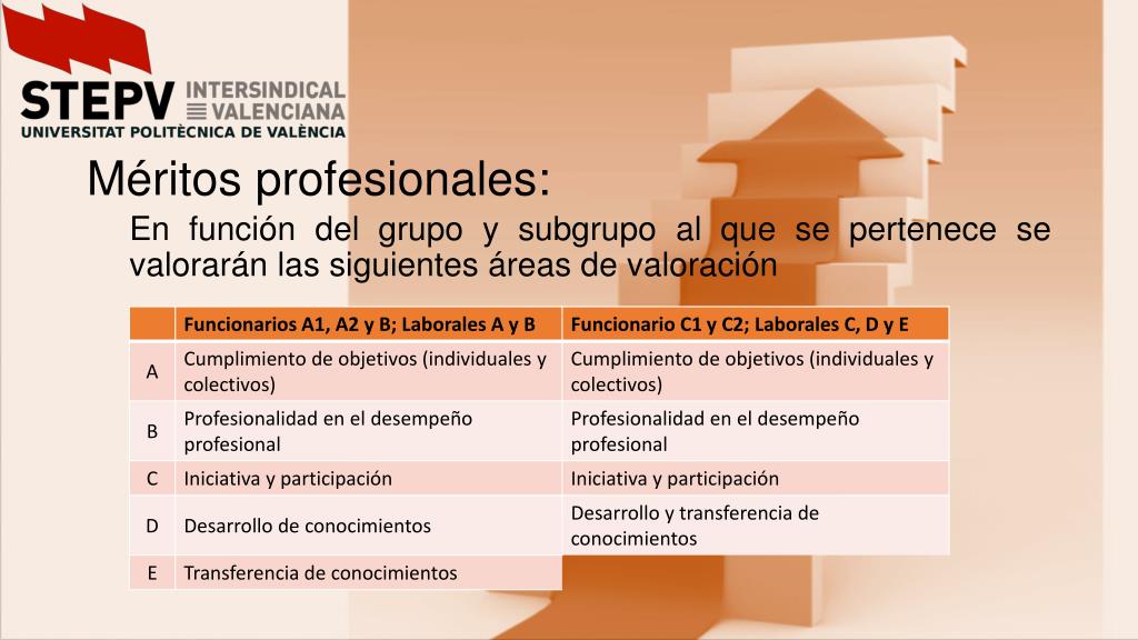 Méritos profesionales: En función del grupo y subgrupo al que se pertenece se valorarán las siguientes áreas de valoración