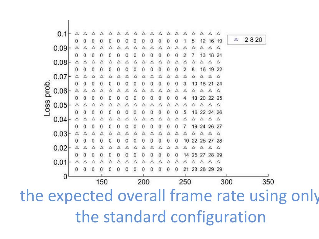 Comparing the last four with the standard configuration in the second one, choosing a better seed-set can achieve significant improvement in terms of expected frame rate. • the expected frame rate is not far from performing no configuration reduction, which is illustrated in the first figure.