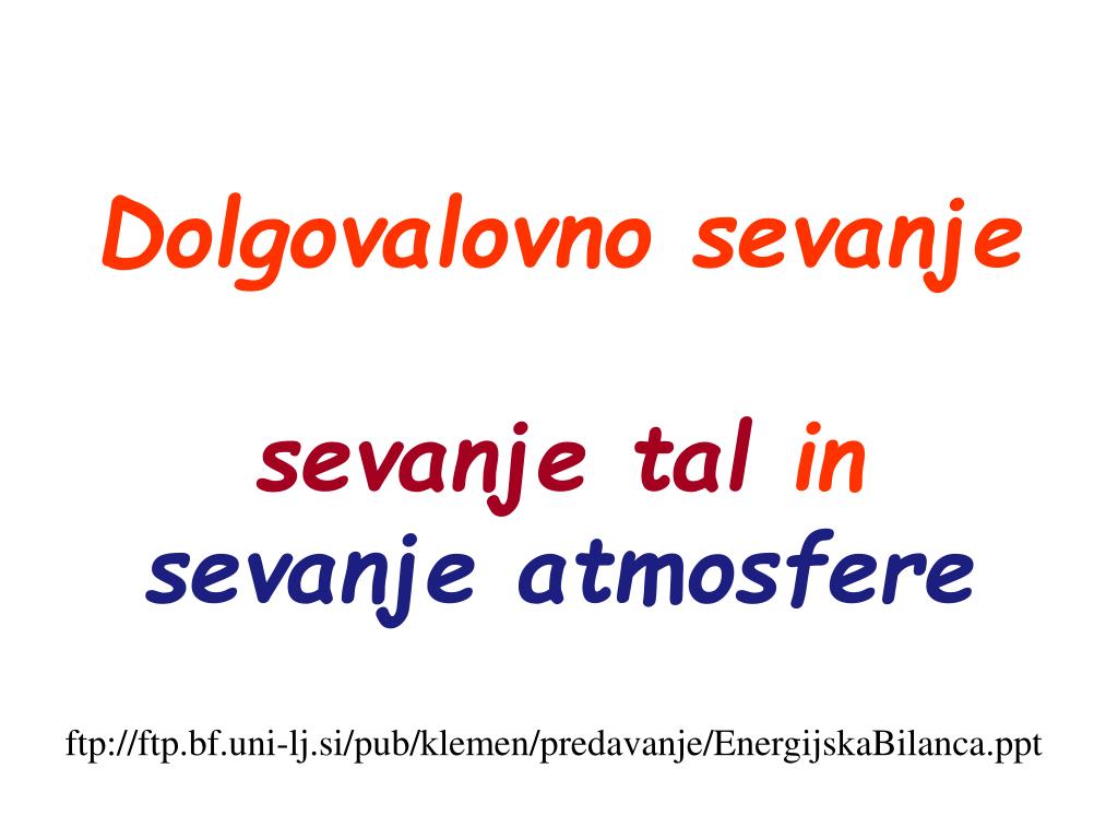 Dolgovalovno sevanjesevanje talinsevanje atmosfere ftp://ftp.bf.uni-lj.si/pub/klemen/predavanje/EnergijskaBilanca.ppt