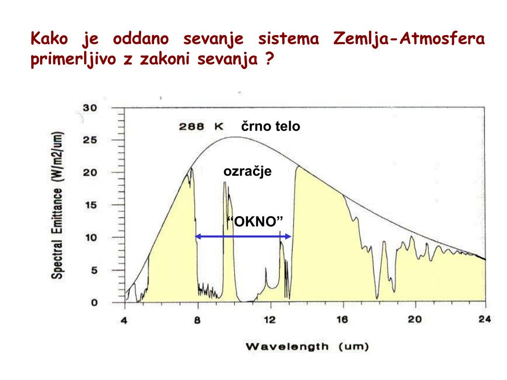 Kako je oddano sevanje sistema Zemlja-Atmosfera primerljivoz zakoni sevanja ? črno telo ozračje “OKNO”