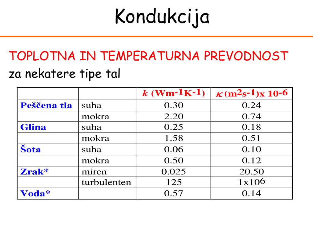 Kondukcija TOPLOTNA IN TEMPERATURNA PREVODNOST za nekatere tipe tal