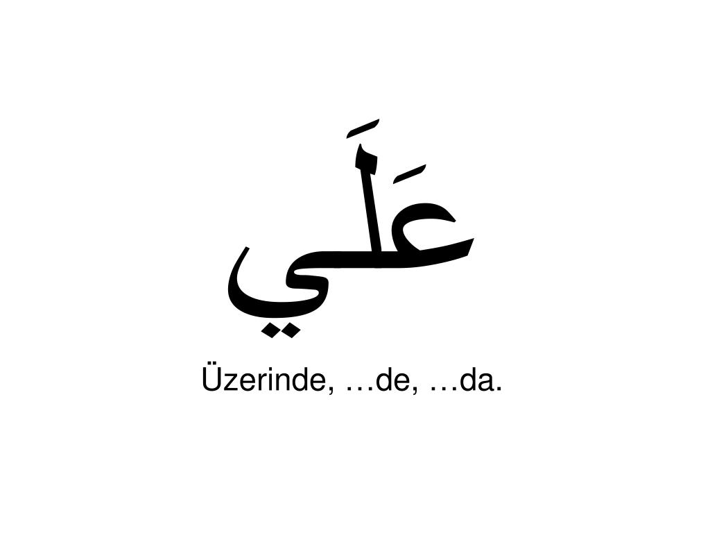 عَلَي Üzerinde, …de, …da.